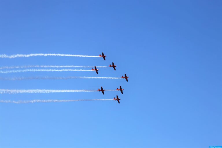 الطائرات السبع للفرقة قدمت عروضها على علو منخفض ومتوسط لتمكين المشاهدين من رؤية الطائرات عن قرب، قبل أن تختتم عروضها برسم الرقم “25” في السماء، في إشارة رمزية إلى الذكرى الخامسة والعشرين لتربع الملك محمد السادس على العرش.