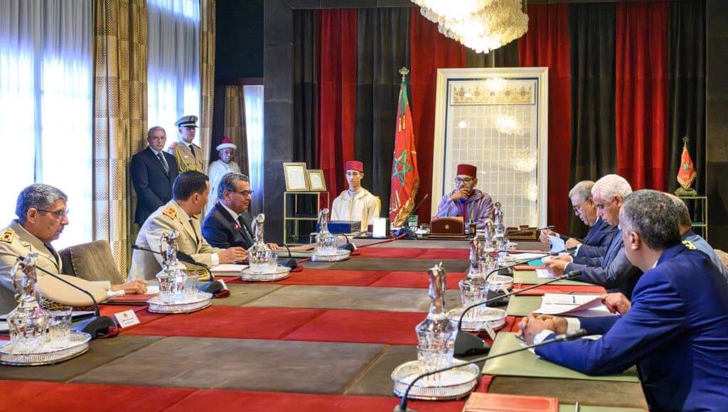 “ﺗرأس ﺻﺎﺣب اﻟﺟﻼﻟﺔ اﻟﻣﻠك ﻣﺣﻣد اﻟﺳﺎدس، ﻧﺻره ﷲ، ﻣرﻓوﻗﺎ ﺑﺻﺎﺣب اﻟﺳﻣو اﻟﻣﻠﻛﻲ وﻟﻲ اﻟﻌﮭد اﻷﻣﯾر ﻣوﻻي اﻟﺣﺳن، ﺑﻌد زوال اﻟﺳﺑت 9 ﺷﺗﻧﺑر 2023 ﺑﺎﻟﻘﺻر اﻟﻣﻠﻛﻲ ﺑﺎﻟرﺑﺎط، ﺟﻠﺳﺔ ﻋﻣل ﺧﺻﺻت ﻟﺑﺣث اﻟوﺿﻊ ﻓﻲ أﻋﻘﺎب اﻟزﻟزال المؤلم، اﻟذي وﻗﻊ يوم اﻟﺟﻣﻌﺔ 8 شتنبر، واﻟذي ﺧﻠف ﺧﺳﺎﺋر ﺑﺷرﯾﺔ كبيرة وﻣﺎدﯾﺔ ﻓﻲ العديد ﻣن ﺟﮭﺎت اﻟﻣﻣﻠﻛﺔ.