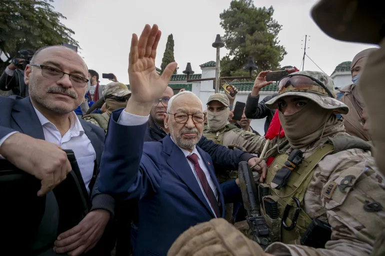 وفي 17 أبريل 2023، دهمت قوات الأمن منزل الغنوشي (84 عاما)، رئيس البرلمان السابق، وأوقفته، ثم أمرت محكمة ابتدائية بإيداعه السجن بتهمة الإدلاء بتصريحات “تحرض على الفوضى والعصيان”.