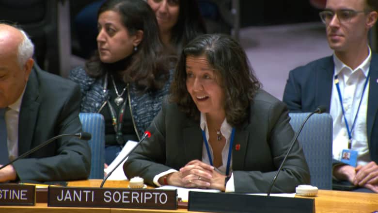 وقال المبعوث الفلسطيني لدى الأمم المتحدة رياض منصور مازحا “أنت تجعلين الأرض تهتز”. قبل أن تكمل سوريبتو حديثها.