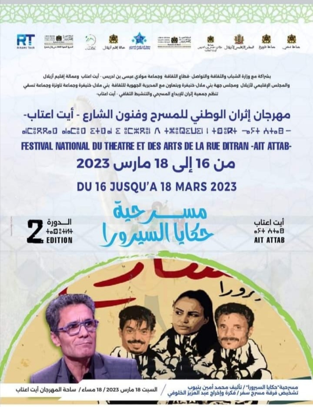 وستحتضن ساحة المهرجان بمدينة أيت عتاب يوم السبت 18 مارس الحالي في السادسة مساء عرض مسرحية السيرورا فعاليات هذه التظاهرة المسرحية التي تنظمها جمعية إثران للإبداع المسرحي والتنشيط الثقافي تحت شعار (المسرح يجي حتى لعندك) من16 إلى 18 مارس 2023.